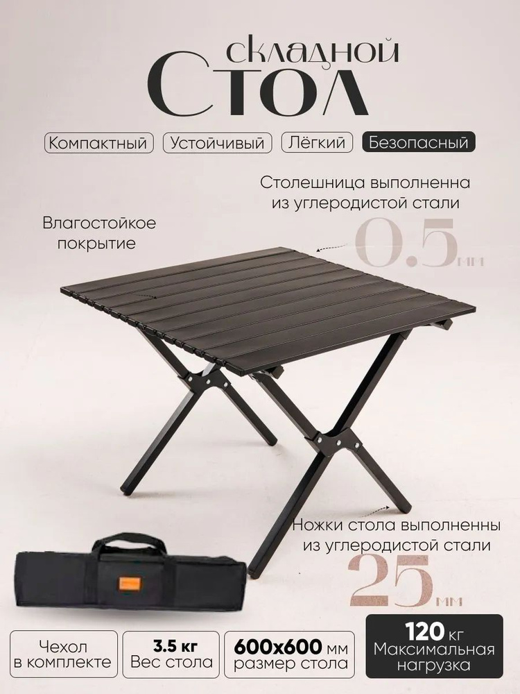 Складной стол для сада,Сталь 60х60х45 см купить на OZON по низкой цене