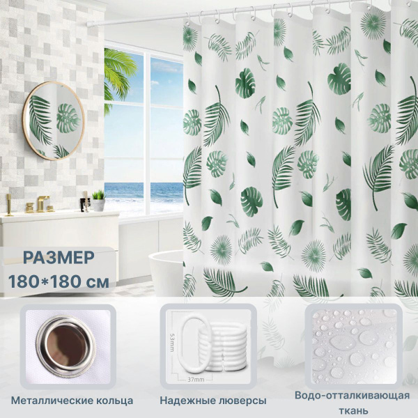 Штора для ванной 180x180 см штора 180*180 см с кольцами с