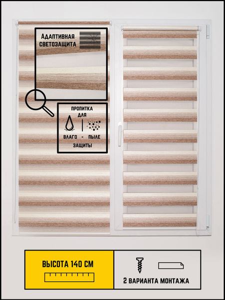 Рулонные шторы Потёмки "Зебра" Бежево-коричневый 02 , размер 40х140 см