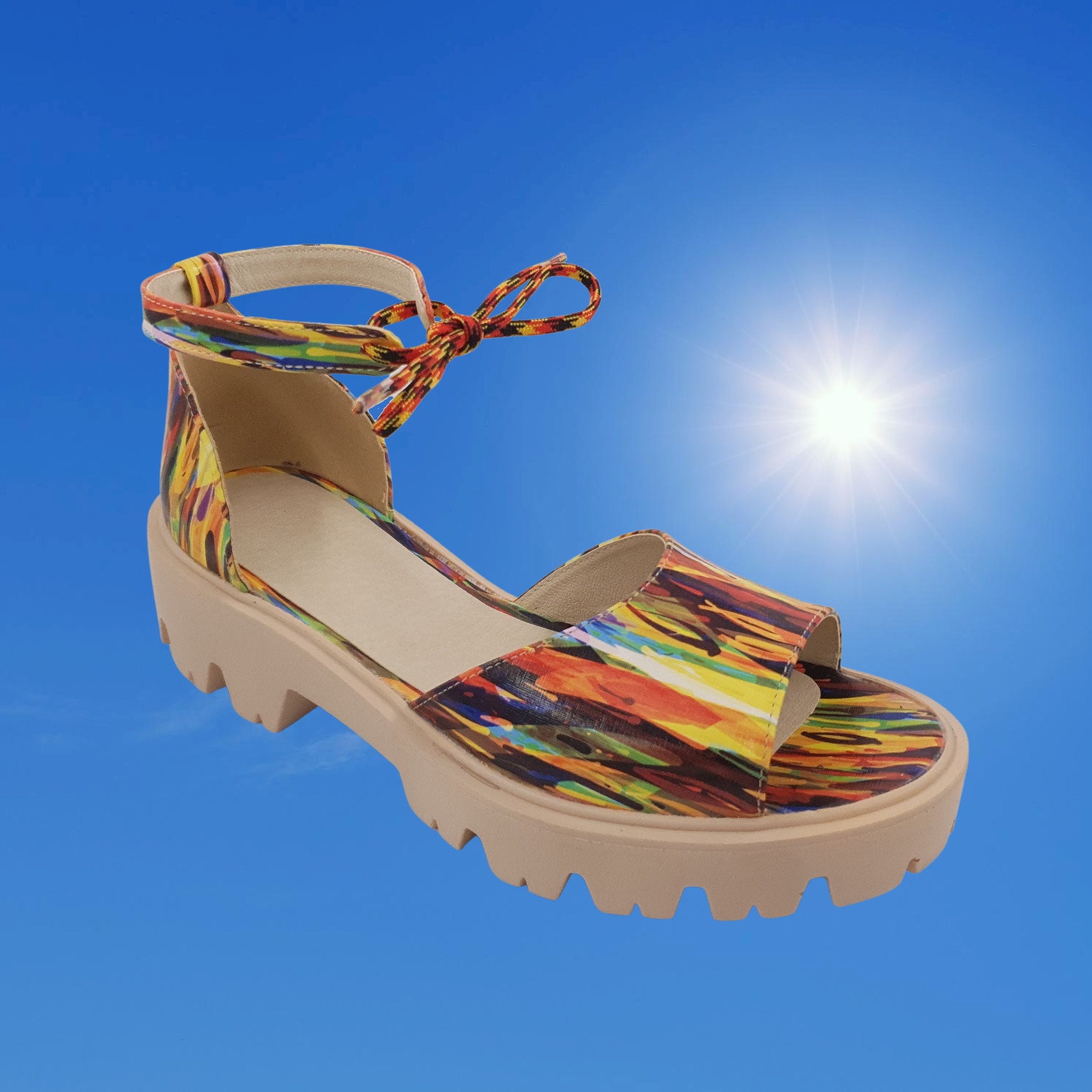 Дамски сандали SandAli, естествена кожа, цветни връзки, олекотено