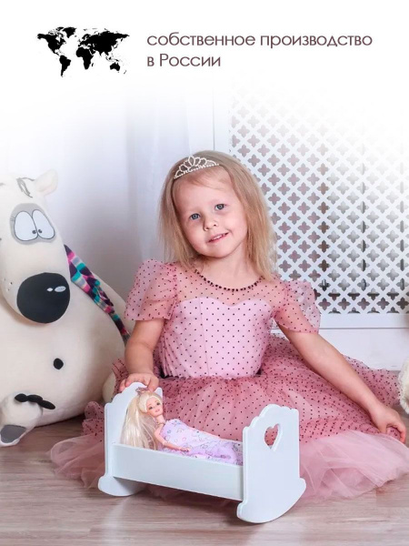 Кроватка для куклы до 28 см белая, кроватка-качалка, с постельным