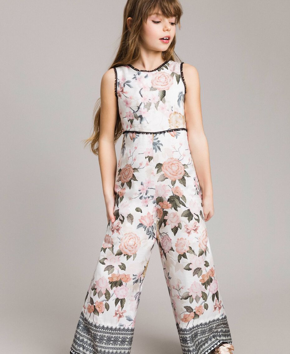 Цветочный комбинезон из вискозы с кружевным принтом