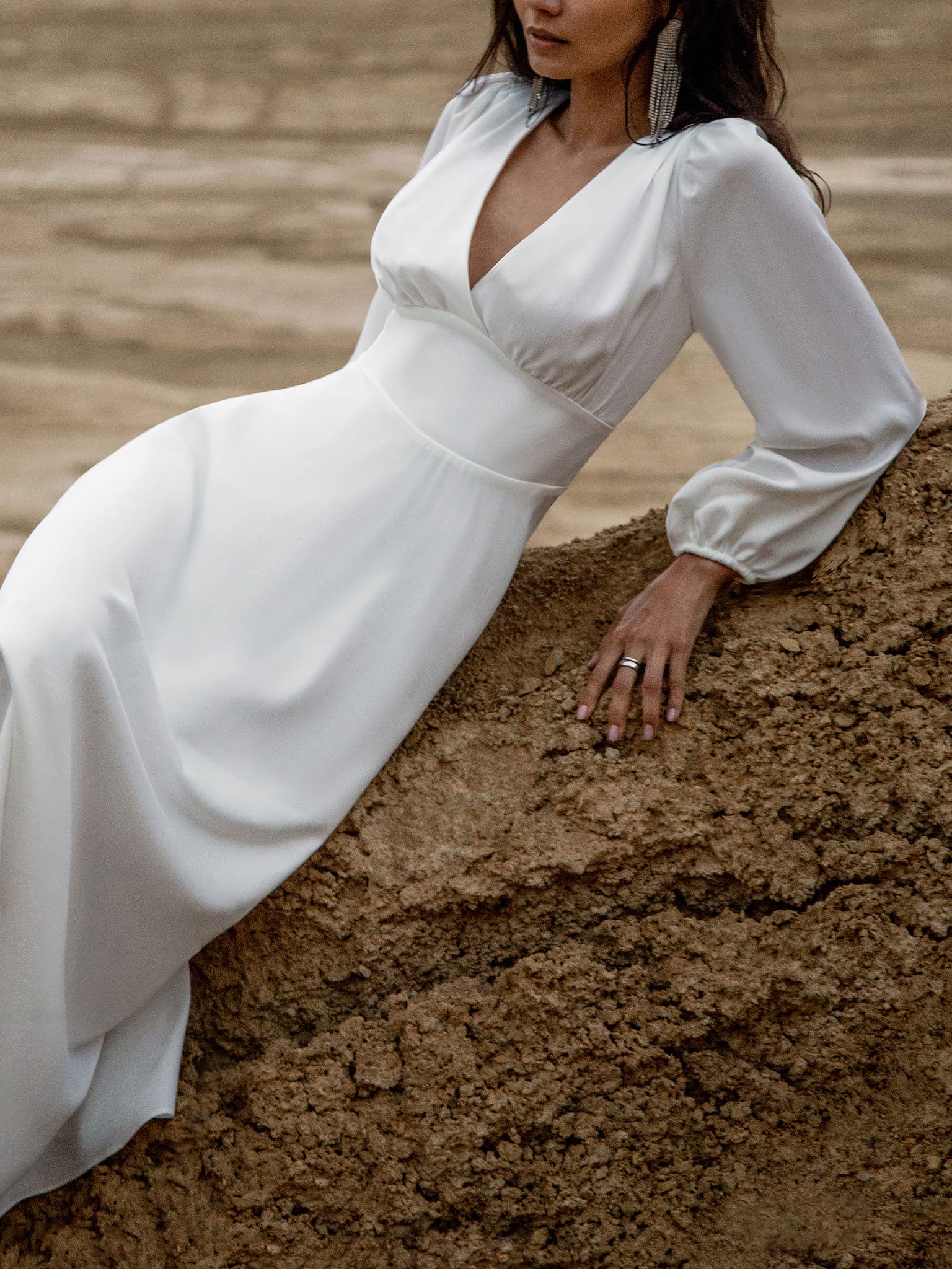 6381 Платье-миди с пышными рукавами бежевое
