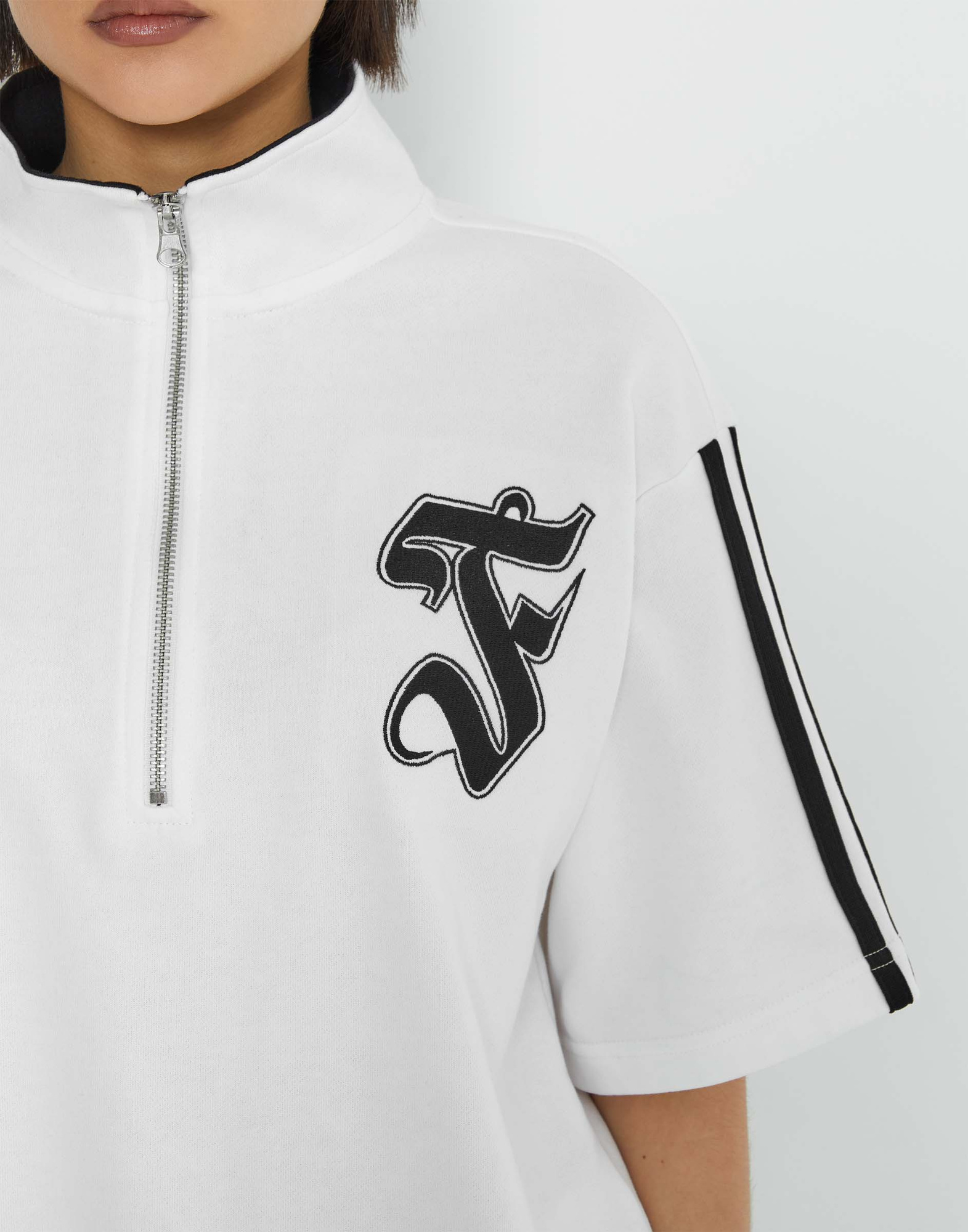 Белый свитшот oversize с воротником на молнии и вышивкой GAC022835-1